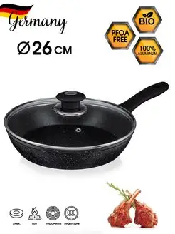 Сковорода 26 см антипригарное мраморное покрытие с крышкой