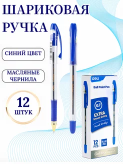 Шариковые ручки синие для школы и офиса набор 12 штук