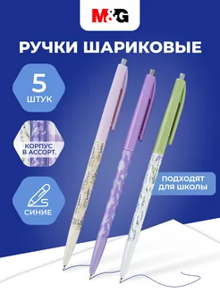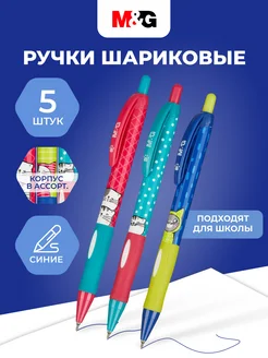 Ручки шариковые синие для школы, набор 5 штук, 0,35 мм
