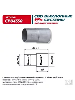 Соединитель труб -переход с d45 мм на d50 мм L84 мм