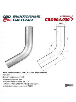 Изгиб трубы глушителя, труба d63, угол 60 град, L400
