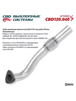Труба Резонатор универсальная ВАЗ 2170 под трубу D51 мм