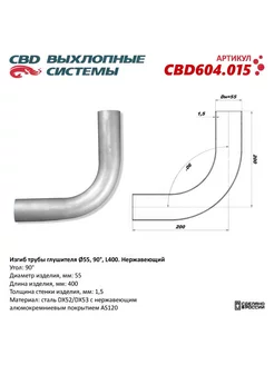 Изгиб трубы глушителя, труба d55, угол 90 град, L400