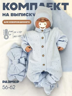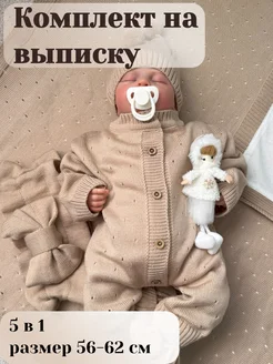 Конверт комплект на выписку вязаный для новорожденного 5в1
