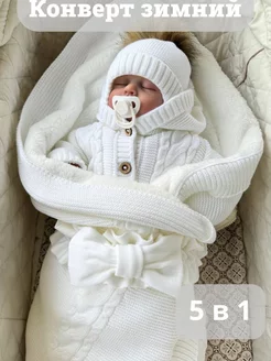 Конверт на выписку зимний вязаный теплый 5 в 1