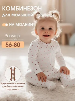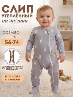 Слип для новорожденных с начесом Комбинезон на молнии