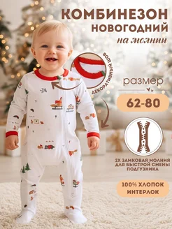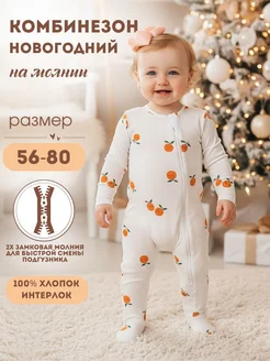 Слип для новорожденных новогодний Комбинезон на молнии