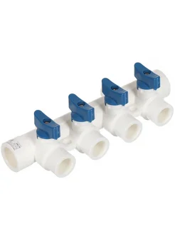 Коллектор ППР 25х20 мм 4 выхода с кранами белый