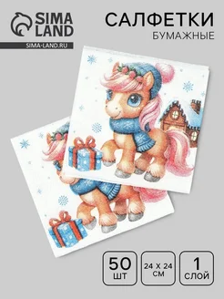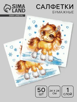 Салфетки бумажные новогодние с Лошадкой 50 шт