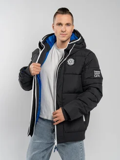 бомбер мужской зимний двухсторонний синий с капюшоном