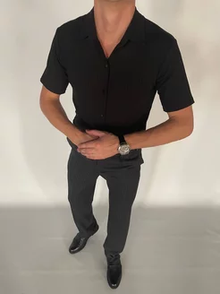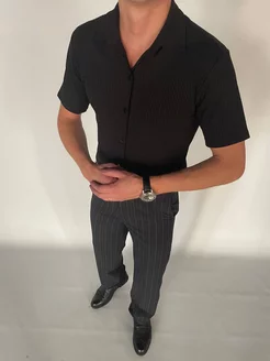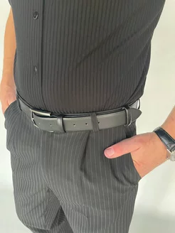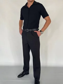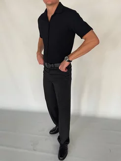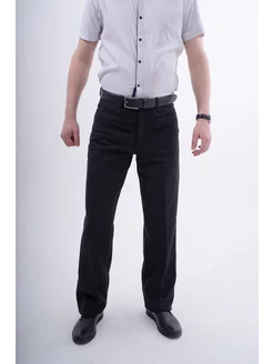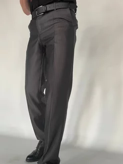 Брюки классические прямые тёмно-серые с тёмной полоской