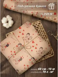 Бумага упаковочная для букетов цветов и подарков "Love is"