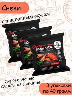 снек из сырокопчёной свинины, 3 штуки по 40 грамм