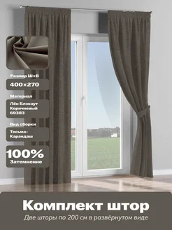 Шторы лен блэкаут 2 шт 200х270 см, коричневые