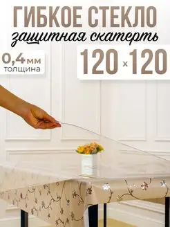 Скатерть жидкое стекло прозрачная на стол 0,4мм120x120см