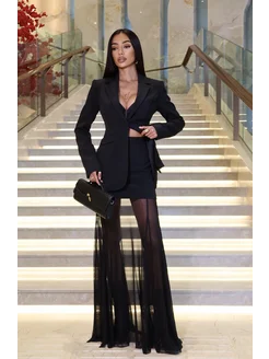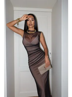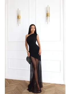 Платье прозрачное с драпировкой в пол