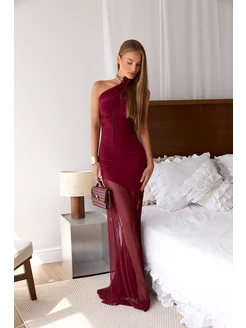 Платье длинное на одно плечо праздничное новогоднее