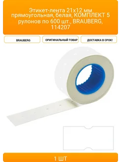 Этикет-лента 21х12 мм прямоугольная, белая, КОМПЛЕКТ 5 руло