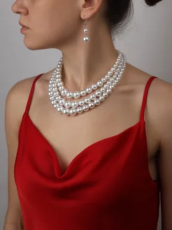 Бусы из жемчуга многослойные и серьги комплект