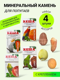 Минеральный камень для попугаев, ассорти 4 штуки