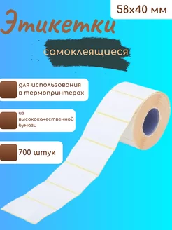 Термоэтикетки самоклеящиеся 58х40 мм 700 этикеток 5 рулонов