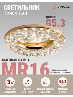 Точечный потолочный светильник золото с хрусталиками