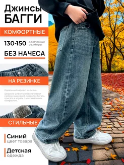 Джинсы прямые широкие багги на резинке детские в школу