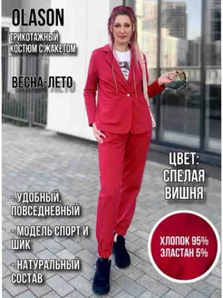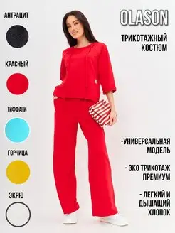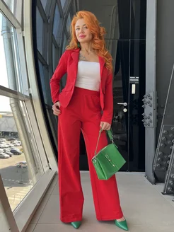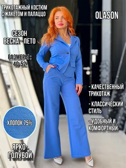 Костюм трикотажный с пиджаком и широкими брюками палаццо