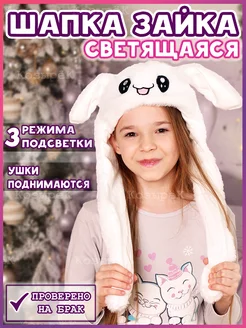 Шапка Зайка светящаяся с подвижными двигающимися ушками