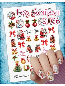 Набор слайдеров - Новый Год Лошади - наклейки для ногтей 6шт