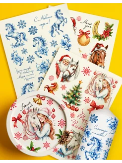 Декупажная карта наклейки переводные - Новый Год Лошади