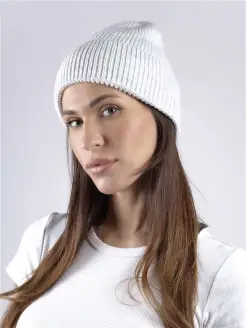Шапка женская из хлопковой пряжи вязаная с отворотом