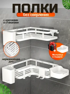 Полка для ванной угловая без сверления 2 штуки с мыльницей