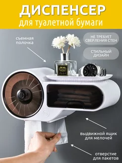 Держатель для туалетной бумаги настенный с полкой и ящиком