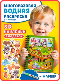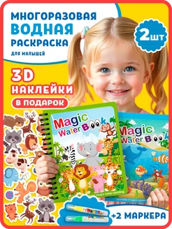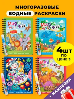 Водная многоразовая раскраска набор 4 шт + 4 маркера