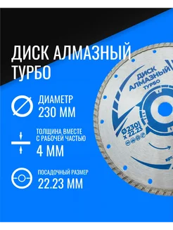 Алмазный диск турбо 230 мм х 22,23 для УШМ