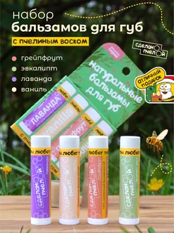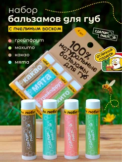 Бальзам для губ увлажняющий, набор гигиенических помад 4 шт