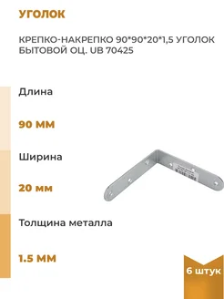Бытовой оцинкованный уголок 90х90х20х1, 5 UB, Уп. 6шт