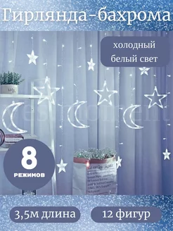 Гирлянда штора звезды и луна для дома 3,5 м белая занавес