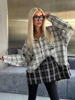 Рубашка комбинированная в клетку chrome hearts