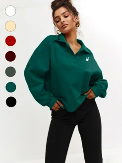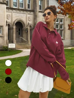 Трендовый джемпер поло оверсайз свитшот preppy style