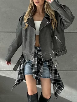 Дубленка осенняя зимняя короткая авиатор экокожа замша