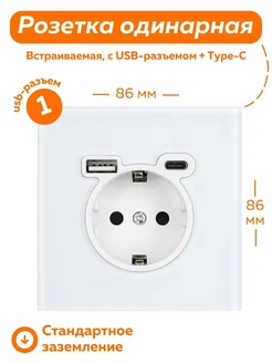 Розетка одинарная с usb и type-c белая