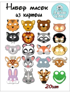 Карнавальные маски Животные саванны набор 20 шт