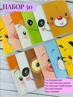 Блокнот детский набор 30шт готовый с наклейками и пакетами