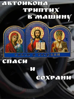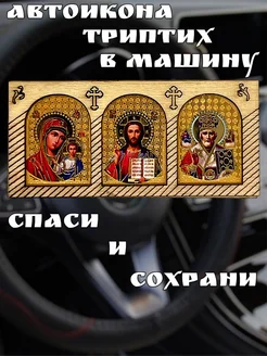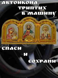 Автомобильная автоикона в машину триптих спаси и сохрани