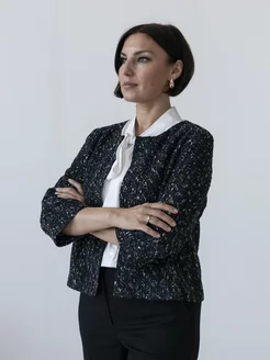 Укороченный твидовый жакет без застежки
