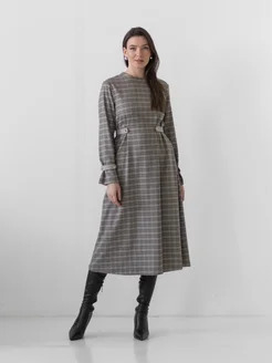 Платье в клетку длинное со вставками