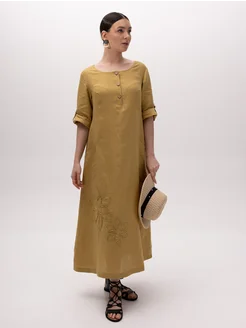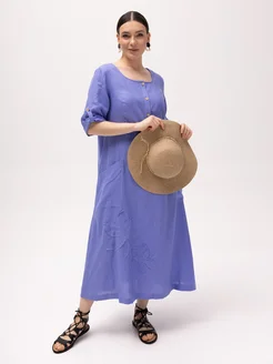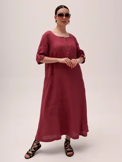 Платье бохо льняное с карманами летнее