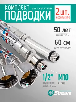 Комплект гибкой подводки для воды SUPER 1 2" x М10, 60 см
